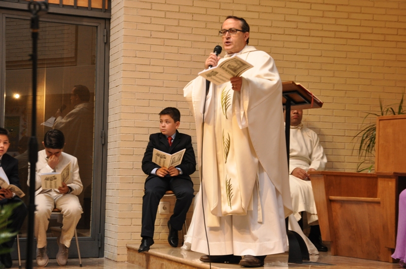 Esta vez, le ha tocado también a nuestro hermanito Andrés y sus compañeros, que han celebrado con mucha emoción su especial encuentro con Jesús en la Eucaristía. Manolo Liarte, nuestro sacerdote, ha estado, como siempre, muy cariñoso con los chicos y cercano a las familias. ¡No es fácil mantener el silencio y la atención de una gran multitud en misas como estas!